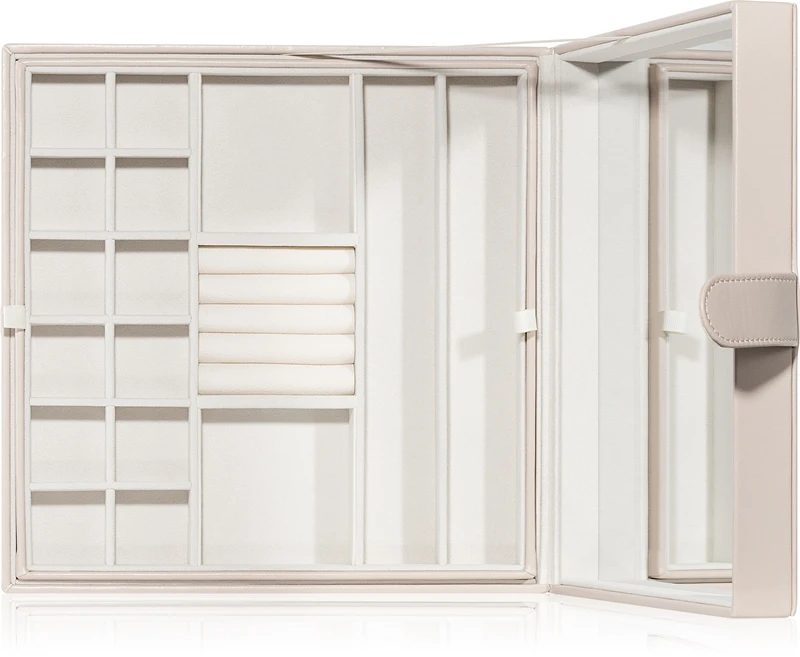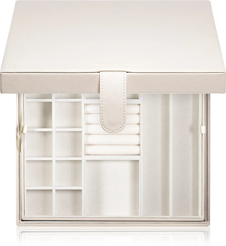 Vos boucles d’oreilles et vos bracelets trouveront désormais toujours leur place et vos chaînettes ne s’emmêleront plus entre elles grâce à la boîte à bijoux Notino Classy Jewelry Box Beige Big. Grâce à ses deux niveaux et à ses grandes dimensions, cette boîte peut accueillir une grande collection de bijoux.